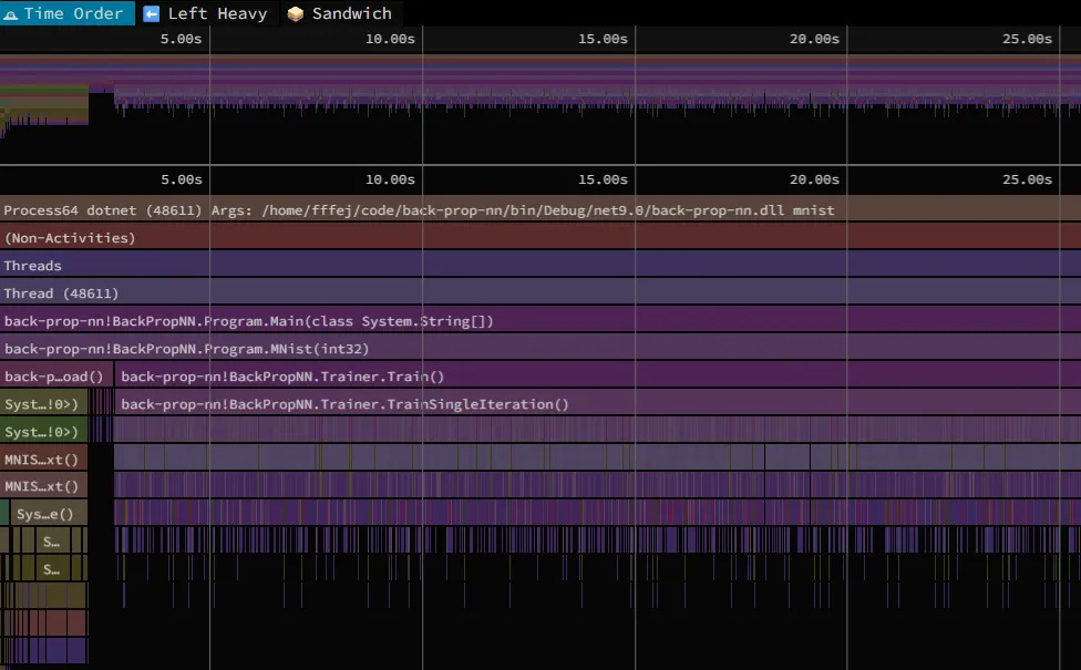 dotnet-trace collect --format speedscope --launch-child-process -- dotnet back-prop.dll mnist