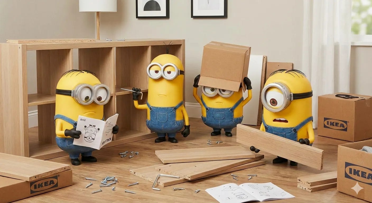 Four Minions assemble an Ikea bookshelf, and Stuart gets a promotion he didn't ask for
