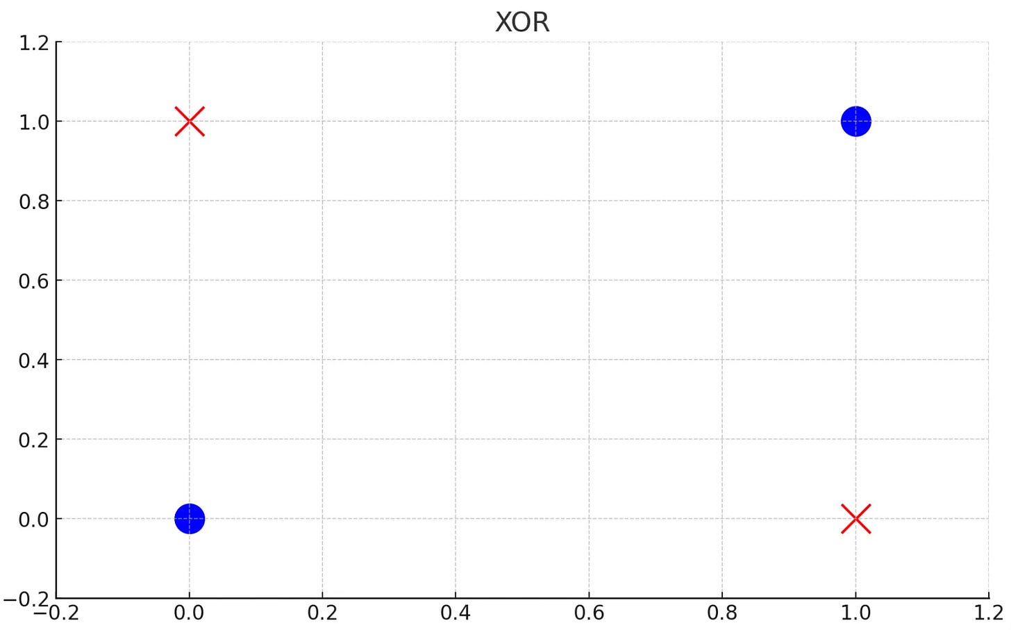 This happens because XOR is not linearly separable. To put that simply, you can’t draw a straight line that divides the 1s and 0s!